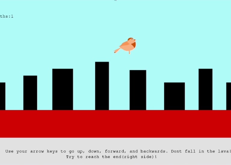 Python based application using pygame where the player has to jump their bird across hot lava to reach the end.
